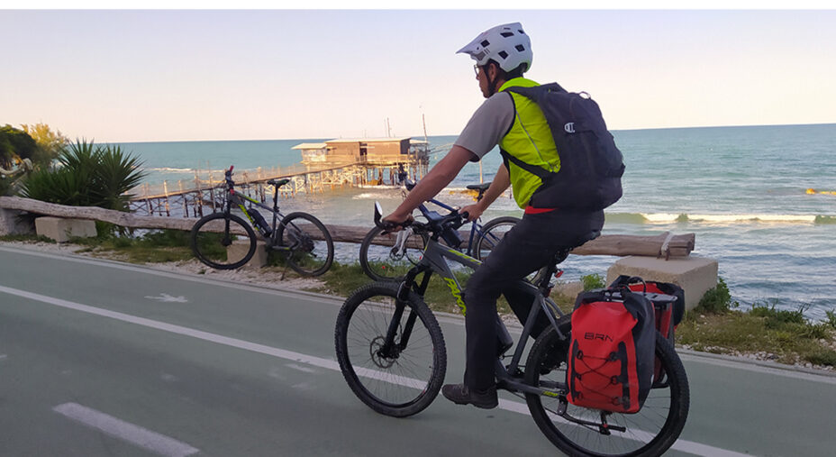 Qui, avvolti dal silenzio, su un verde prato all’inglese punteggiato da magnolie e siepi di biancospino, sono sepolti 2.617 militari del Commonwealth britannico (oltre ad un memoriale di 517 indiani cremati in accordo con la loro religione), periti durante le battaglie del fiume Sangro sul finire del 1943. C’è chi riporta i ricordi di chi ha visto il corso d’acqua tinto di rosso e noi concludiamo il nostro viaggio assistendo ad un monologo dell’attore Domenico Galasso. L’occasione è la manifestazione Art Bike & Run a Fossacesia Marina, proprio sulla Via Verde della Costa dei Trabocchi. «Qui si sono scontrati eserciti provenienti da tutto il mondo – dice con appropriata intensità espressiva – ed esattamente 80 anni fa la Linea Gustav era una soglia difficilmente attraversabile». Ora invece è una ciclovia che possiamo percorrere in lungo e in largo con le nostre bici, per appropriarsi di un territorio gentile che corre dall’Adriatico alla Majella…